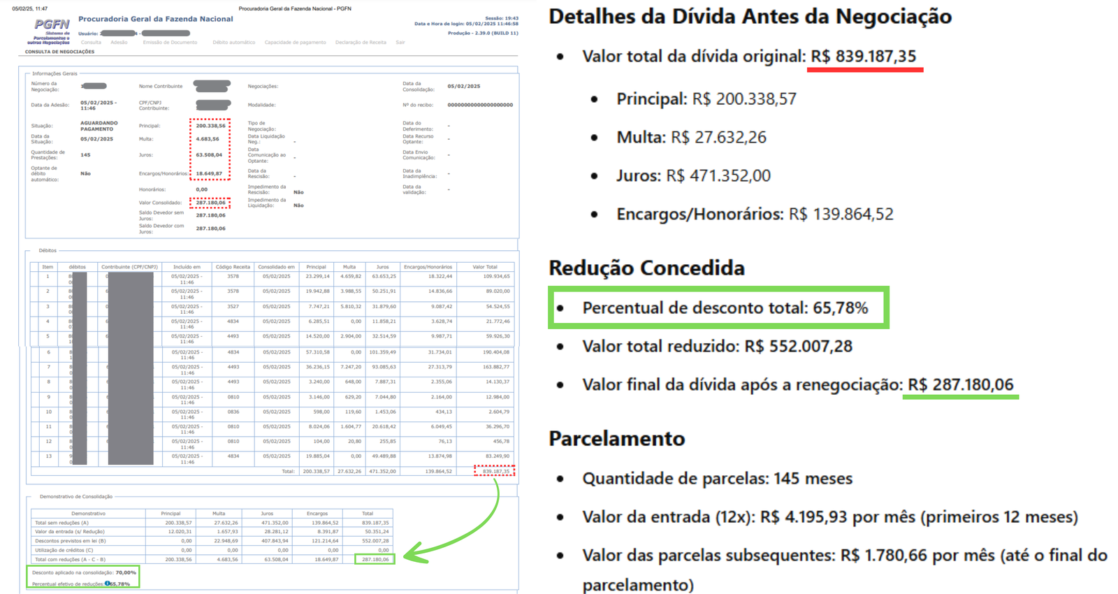 Levantamento de débitos parcelados e não parcelados